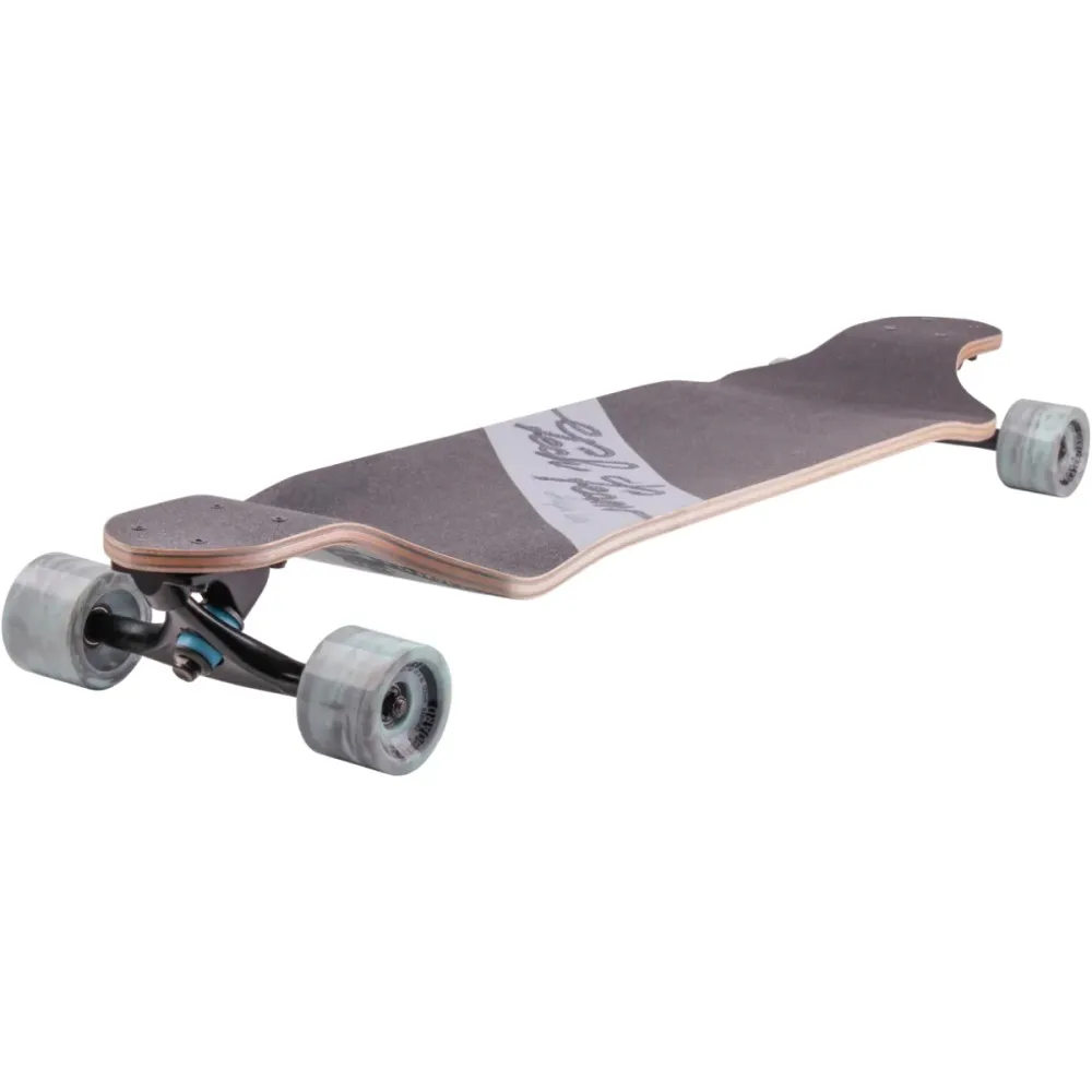 Лонгборд массой 3,7 кг рассчитан на грузоподъемность до 80 кг, что допускает пользование подростками и взрослыми ездоками. Представлен стильным современным дизайном. Материал изготовления модели – дерево+полиуретан+алюминий. Из дерева изготовлена вместительная дека, поверхностная часть которой покрыта нескользящей наждачкой. Колесная часть – полиуретановая, мало стираемая и долговечная. Из алюминия изготовлена подвеска.