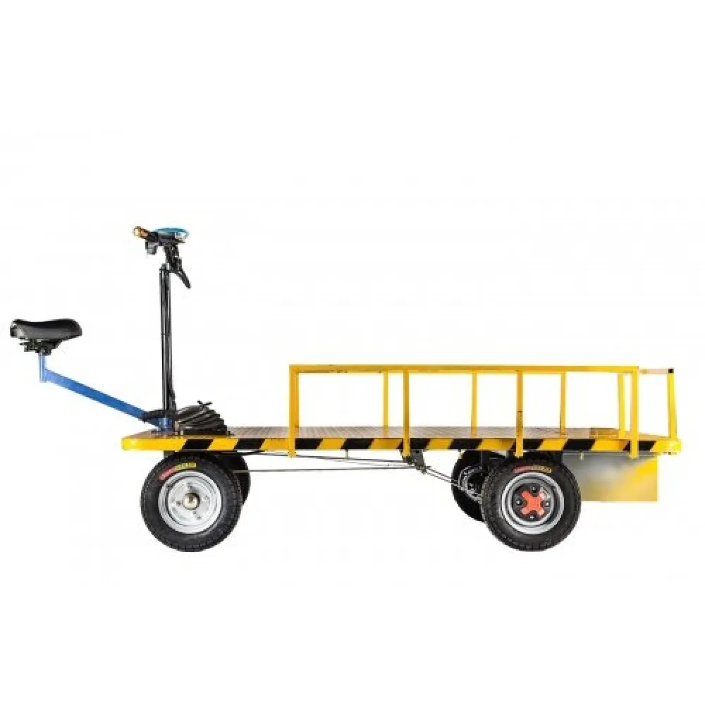 Модель представлена практичными размерами 2000 x 1000 х 400 по длине, ширине и высоте. Визуально тс выглядит можно, в задней части техники имеется знак производителя. Модель оснащена двигателем мощностью 1000 Вт, рассчитана на грузоподъемность до 800кг. Наличие специальных бортов позволяет перевозить разные грузы и корректировать скорость движения. Техника предназначена для эксплуатации в разное время года, безопасная для экологии (вредные выбросы в атмосферу отсутствуют). Габариты техники рассчитаны для передвижения по ровной широкой дорожке.