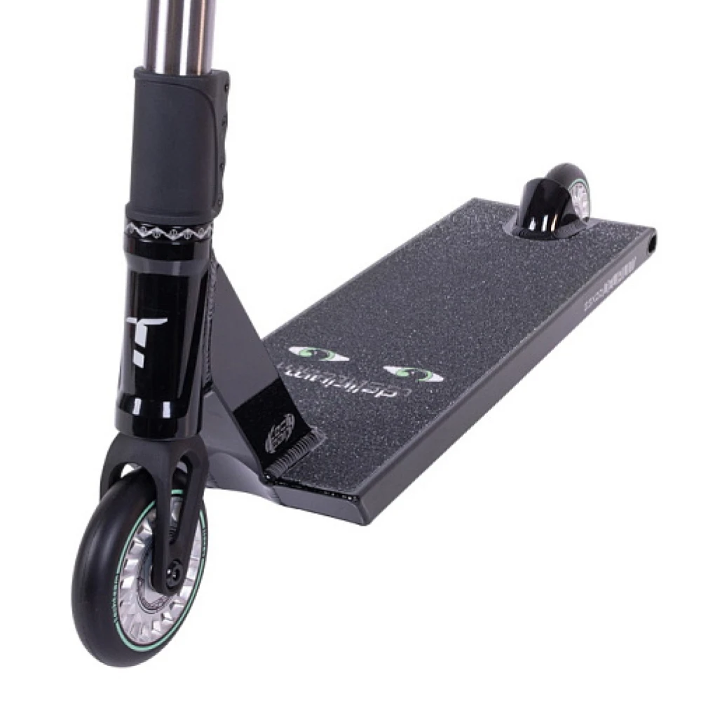Дека самоката имеет длину 540 мм и ширину 150 мм, а footspace в 390 мм предоставляет достаточно пространства для стабильной посадки и уверенного контроля во время выполнения агрессивных элементов. Колеса диаметром 110 мм, оснащенные подшипниками ABEC 9, обеспечивают плавное и стабильное вращение, а система компрессии SCS гарантирует надежное гашение ударов при приземлении. Максимальная нагрузка до 100 кг позволяет использовать Zefir Street райдерам с разными физическими данными, не опасаясь перегрузок.