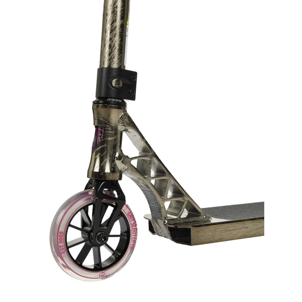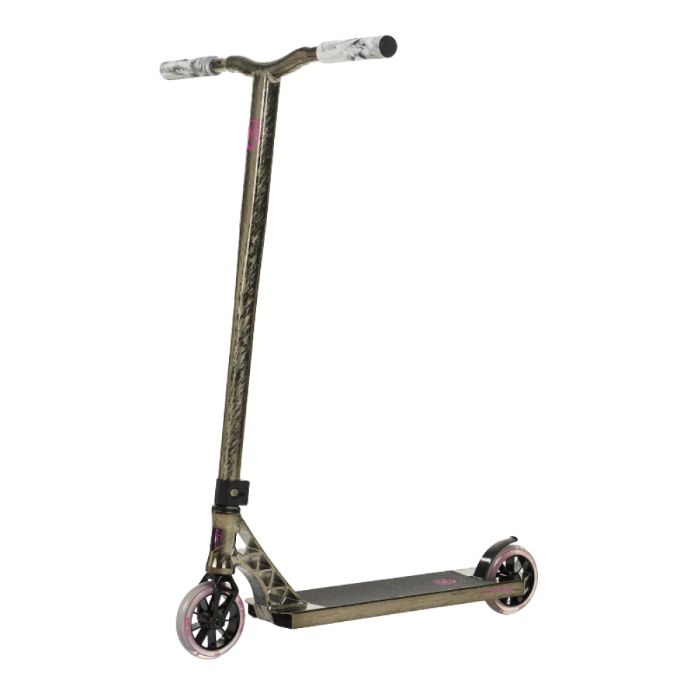 Трюковой самокат Grit Invader, 120 мм  в коричневом цвете вызвал триумф в спорте. Начинающие и продвинутые райдеры в восторге. Сегодняшняя техника напоминает тс будущего, фантастическую. Легкая маневренная, безопасная и комфортная модель превзошла ожидания. Для приобретения товара по разумной цене и получения консультационной поддержки предлагаем стать покупателем нашего интернет-магазина.